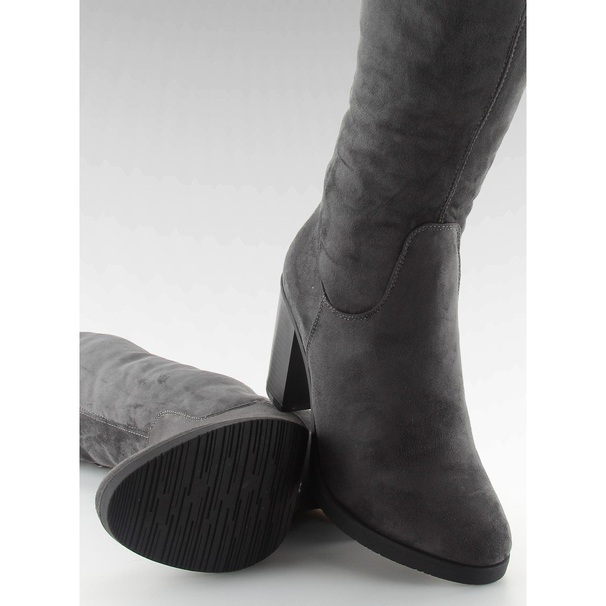 Inna marka Kozačky nad kolena na pohodlném šedém podpatku šedé barvy šedá