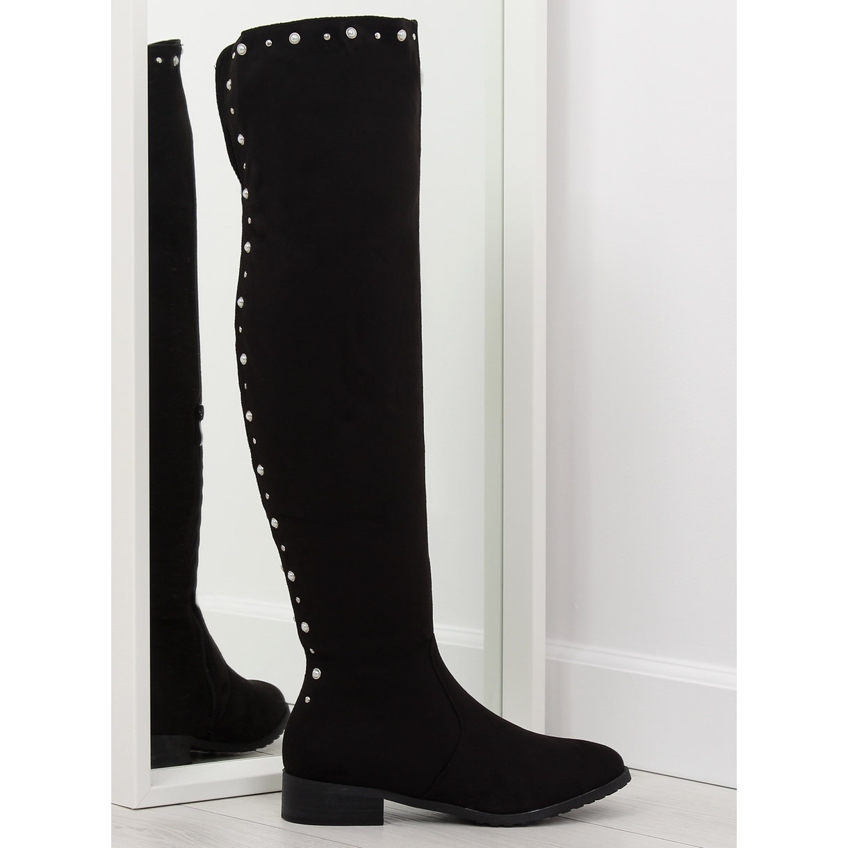 Podrobnosti: Kozačky nad kolena s perlami, černá 688-5 černá černý