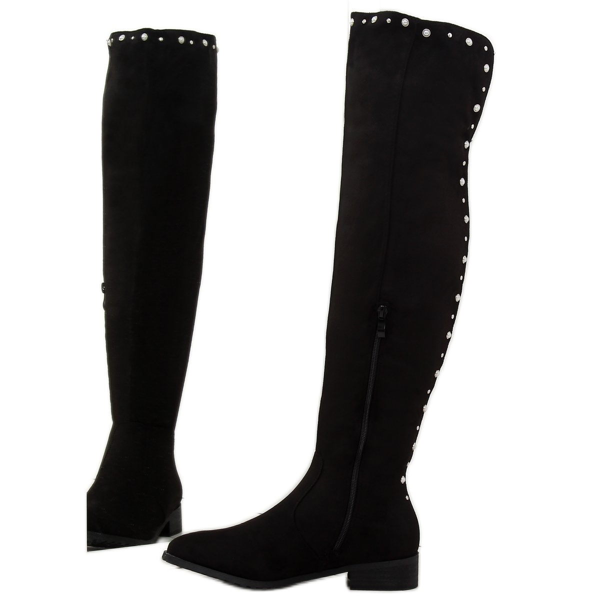 Kozačky nad kolena s perlami, černá 688-5 černá černý
