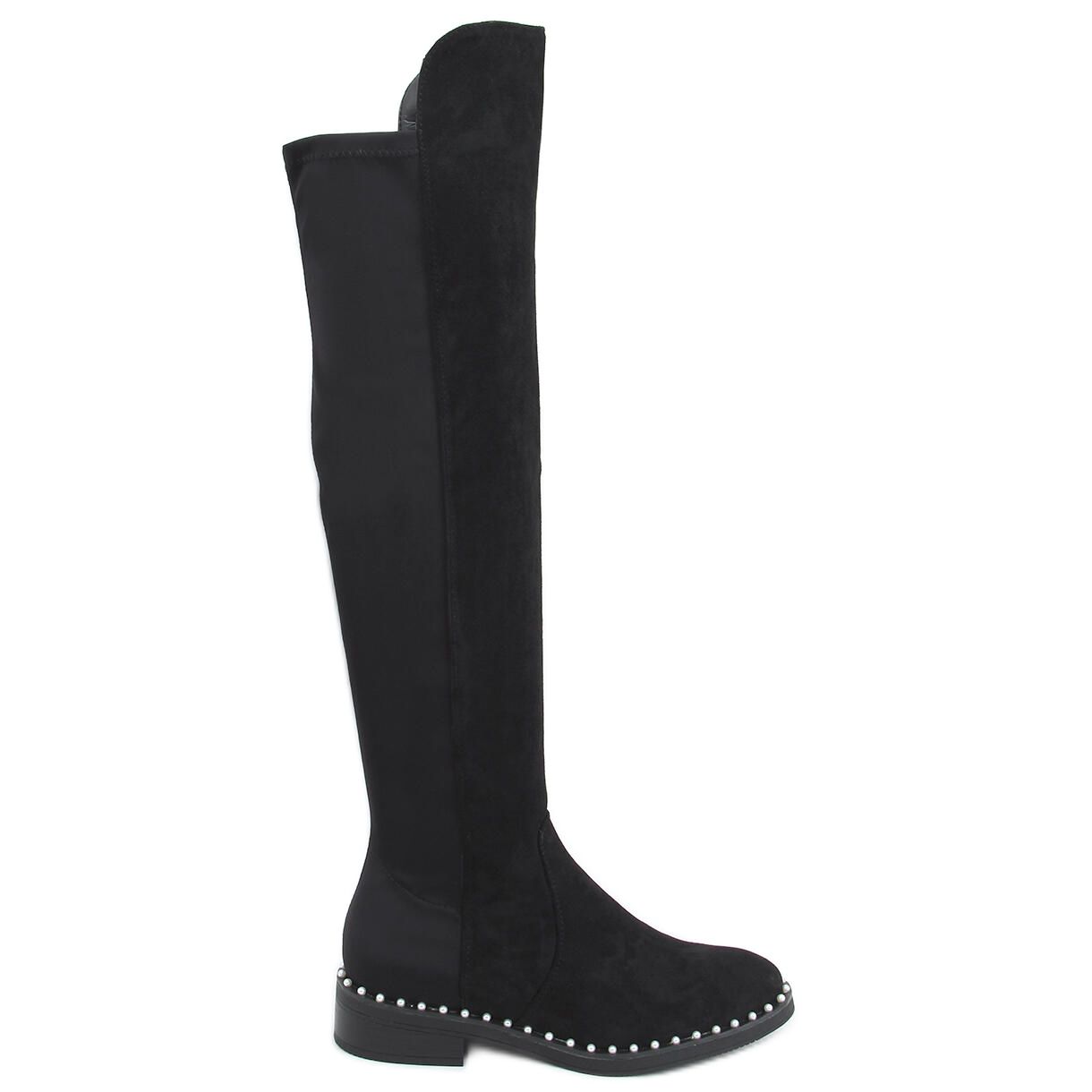 Kozačky nad kolena s perličkami Verso Black černý