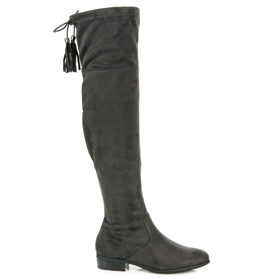 Yes Mile Yes Mile Kozačky nad kolena s třásněmi šedá
