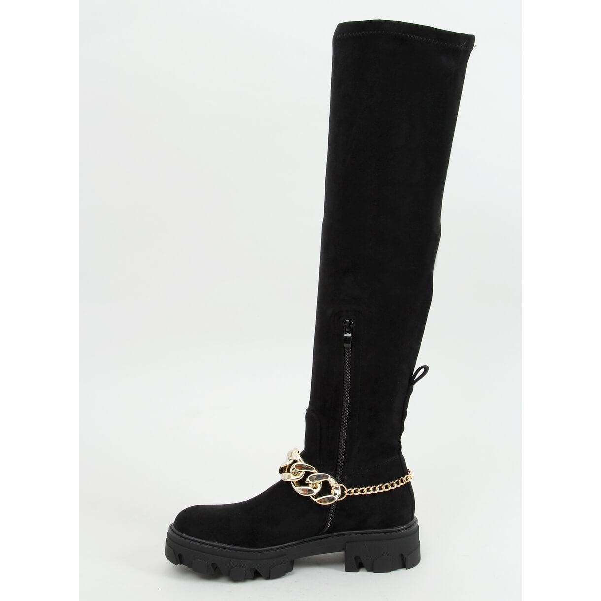 Inna marka Kozačky nad kolena se silnou podrážkou ML174 Microfibre Black černá