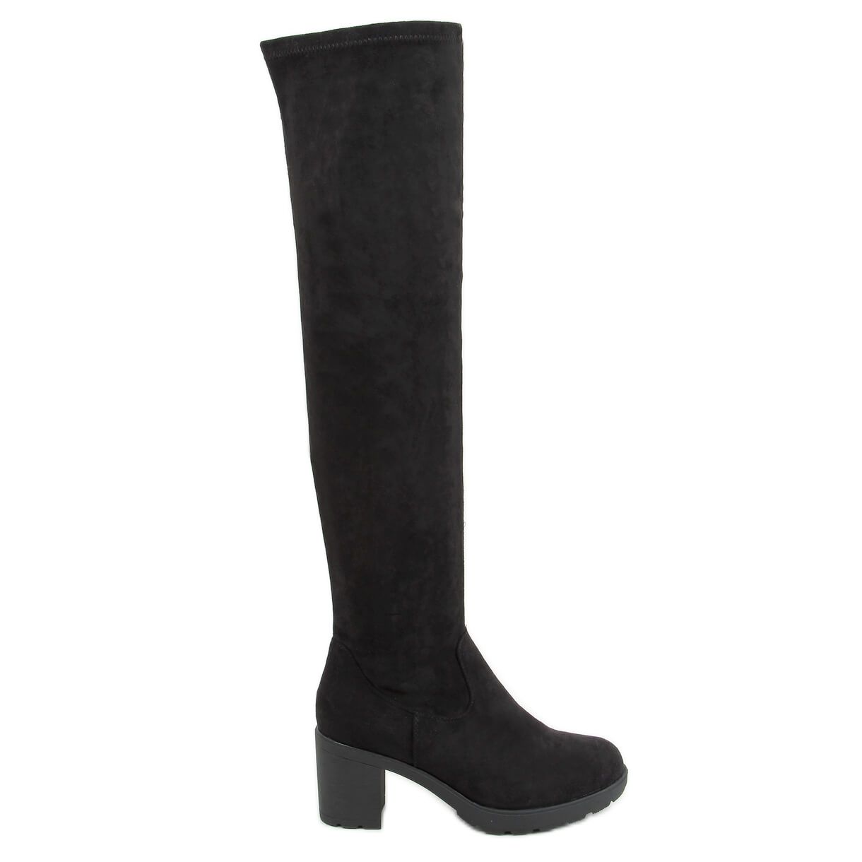 Inna marka Kozačky nad kolena se širokými podpatky černé Y8603 Black černá