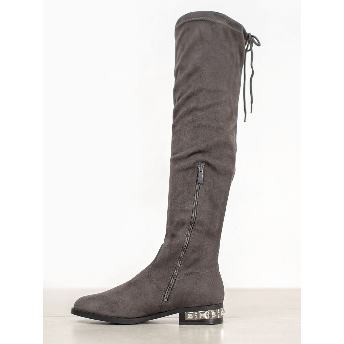 Bestelle Bestelle Kozačky nad stehna s ozdobným podpatkem šedá