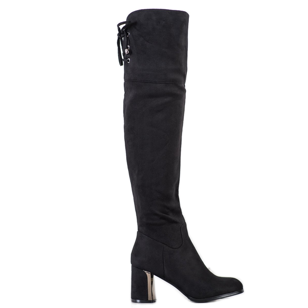 Gogo Gogo Kozačky nad stehna s ozdobným podpatkem černá