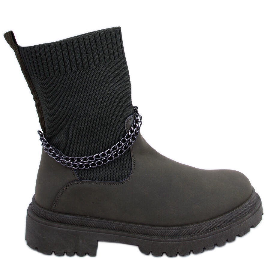 Jesse Blackish Green Boots - zelená, s flexibilním svrškem a přízvukem řetězu. Perfektní každý den pro milovníky módní a pohodlné obuvi na silné podrážce.
