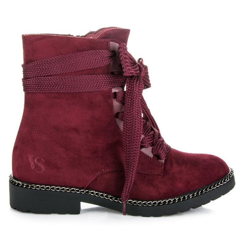Podrobnosti: Vices New Collection Kozačky se širokými bordovými tkaničkami červené