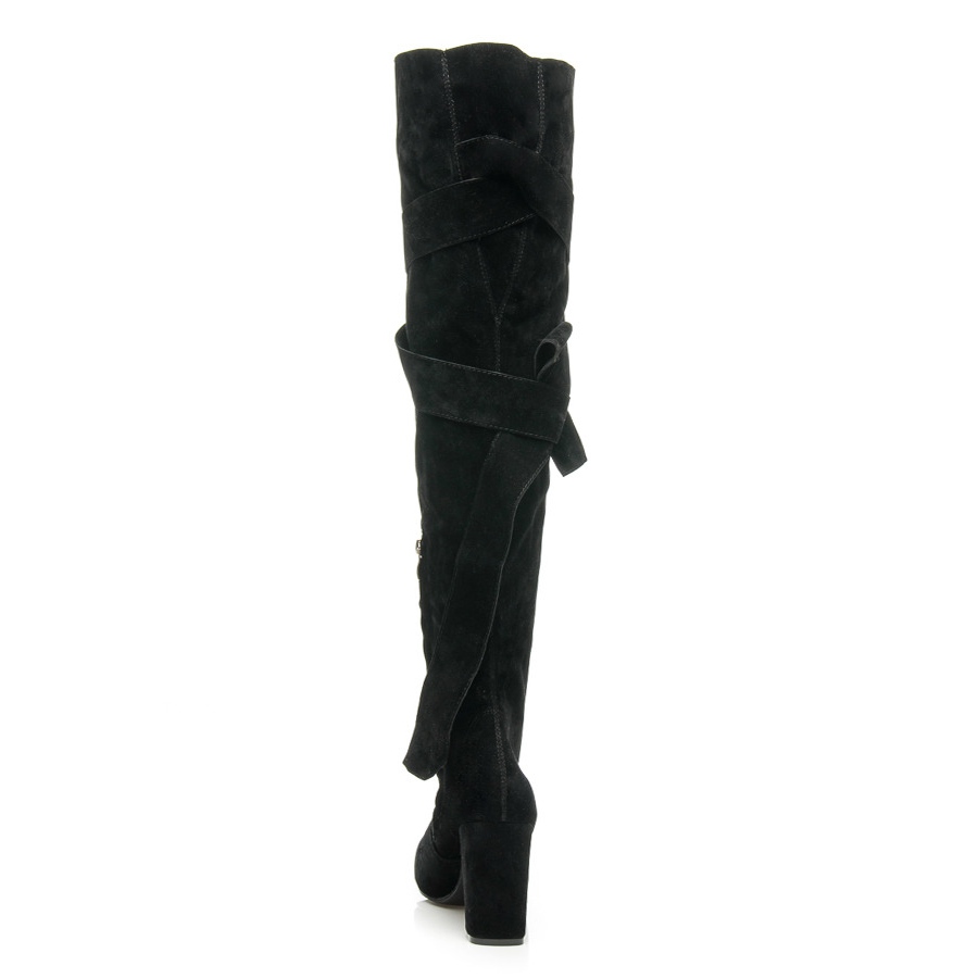Svršek po kolena ze semišové ekokůže dodává botám exkluzivní vzhled a kulatá špička zajišťuje pohodlí při nošení. Zapínání na zip umožňuje rychlé a snadné nazouvání a vyzouvání. Vysoký blokový podpatek o výšce 9 cm přidává několik centimetrů výšky a zároveň zajišťuje stabilitu a pohodlí.