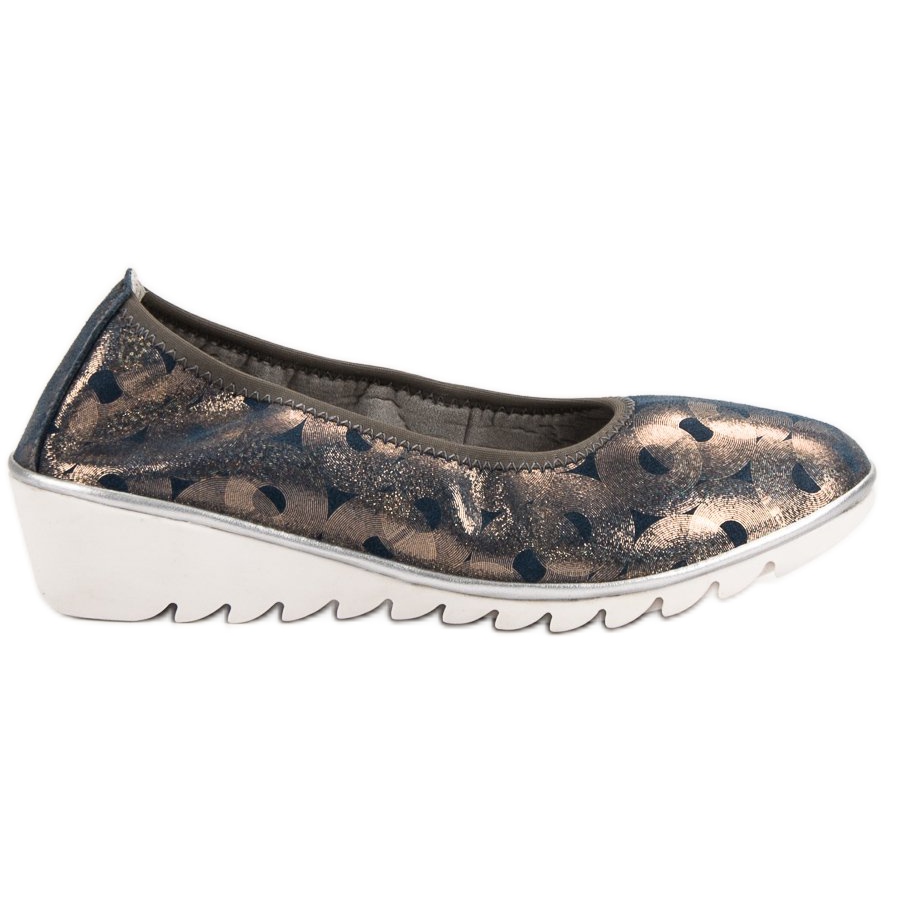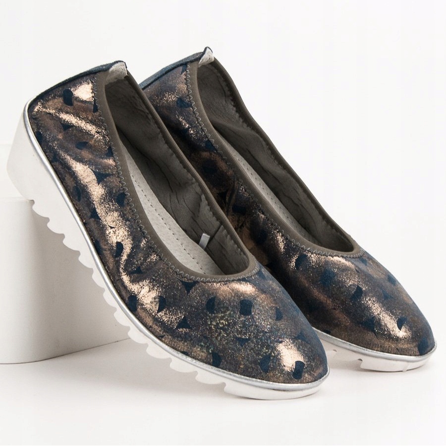 Tyto balerínky mají nazouvací uzávěr, díky kterému se snadno nazouvají a svlékají. Díky vestavěné měkké patě je každý krok v těchto botách čistým potěšením. Výška klínku je 4 cm, což zajišťuje komfort nošení a zároveň opticky prodlužuje nohy.