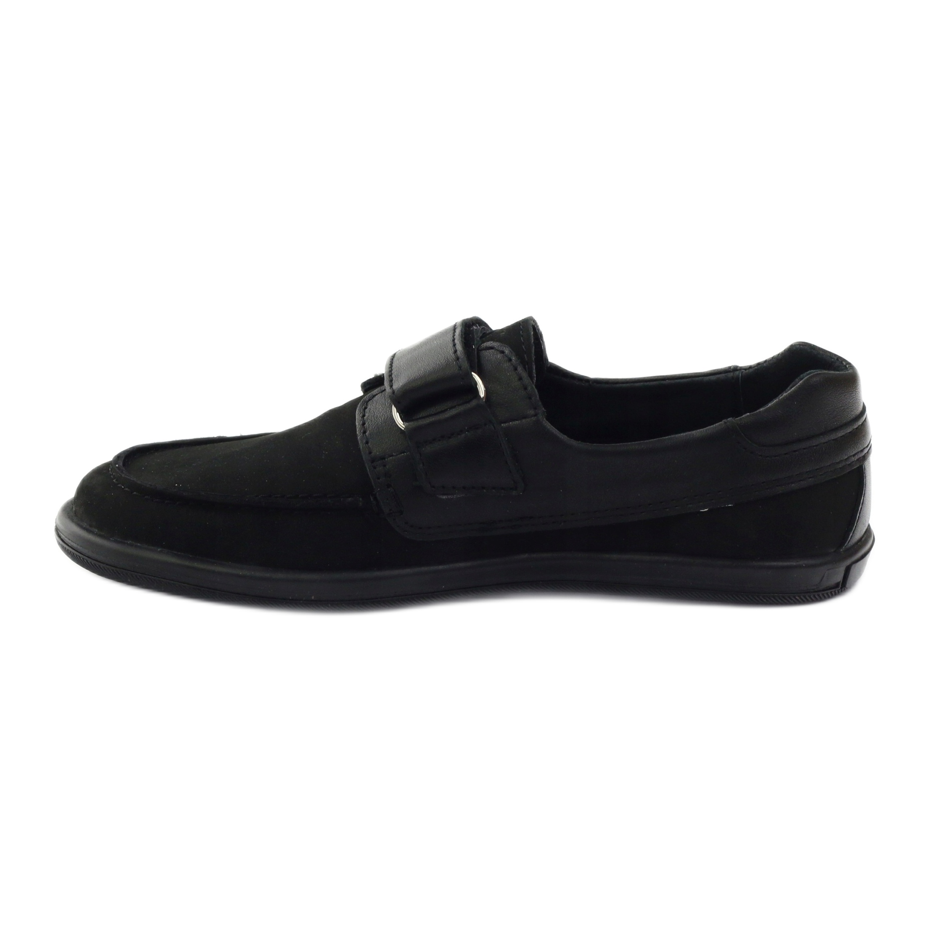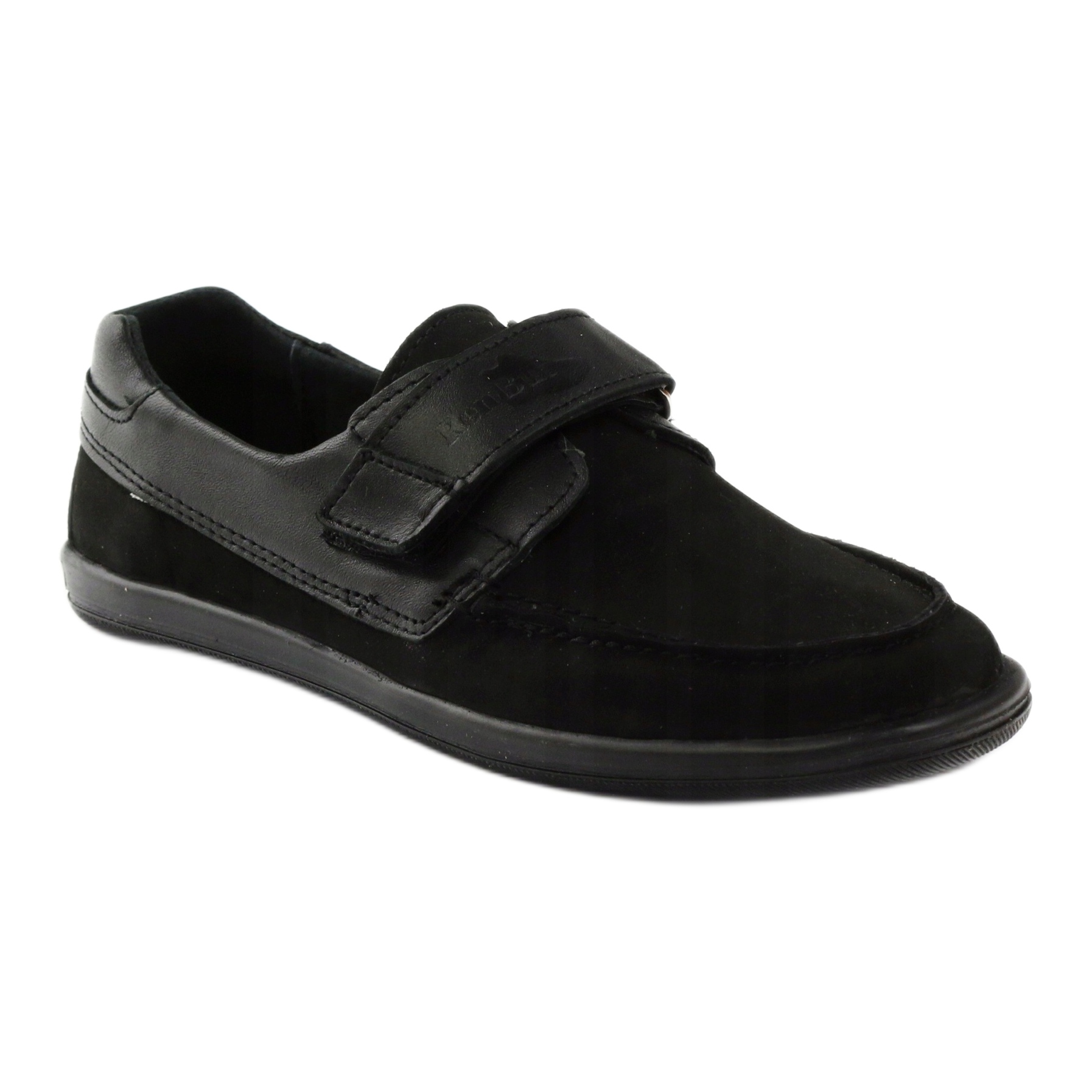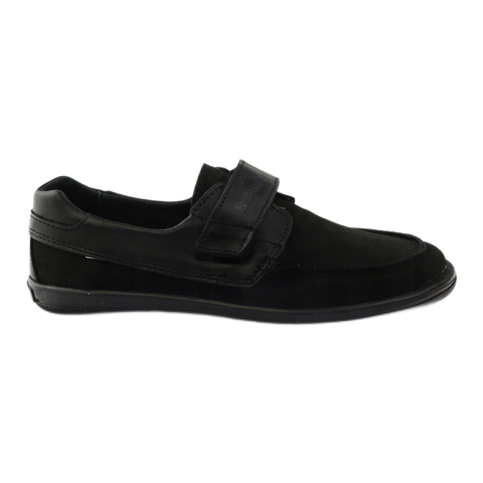 Klasické mokasíny pro kluky z jemné nubukové přírodní kůže v univerzální černé barvě. Model 4249 kombinuje pohodlí a odolnost - zapínání na suchý zip pro rychlé nastavení, s tuhou patou pro stabilizaci chodidla. Celý vnitřek boty je vystlán přírodní kůží, komfort nošení zvyšuje antibakteriální, profilovaná kožená stélka. Termogumová podrážka zaručuje dobrou přilnavost na různých površích - ideální pro chladnější dny.