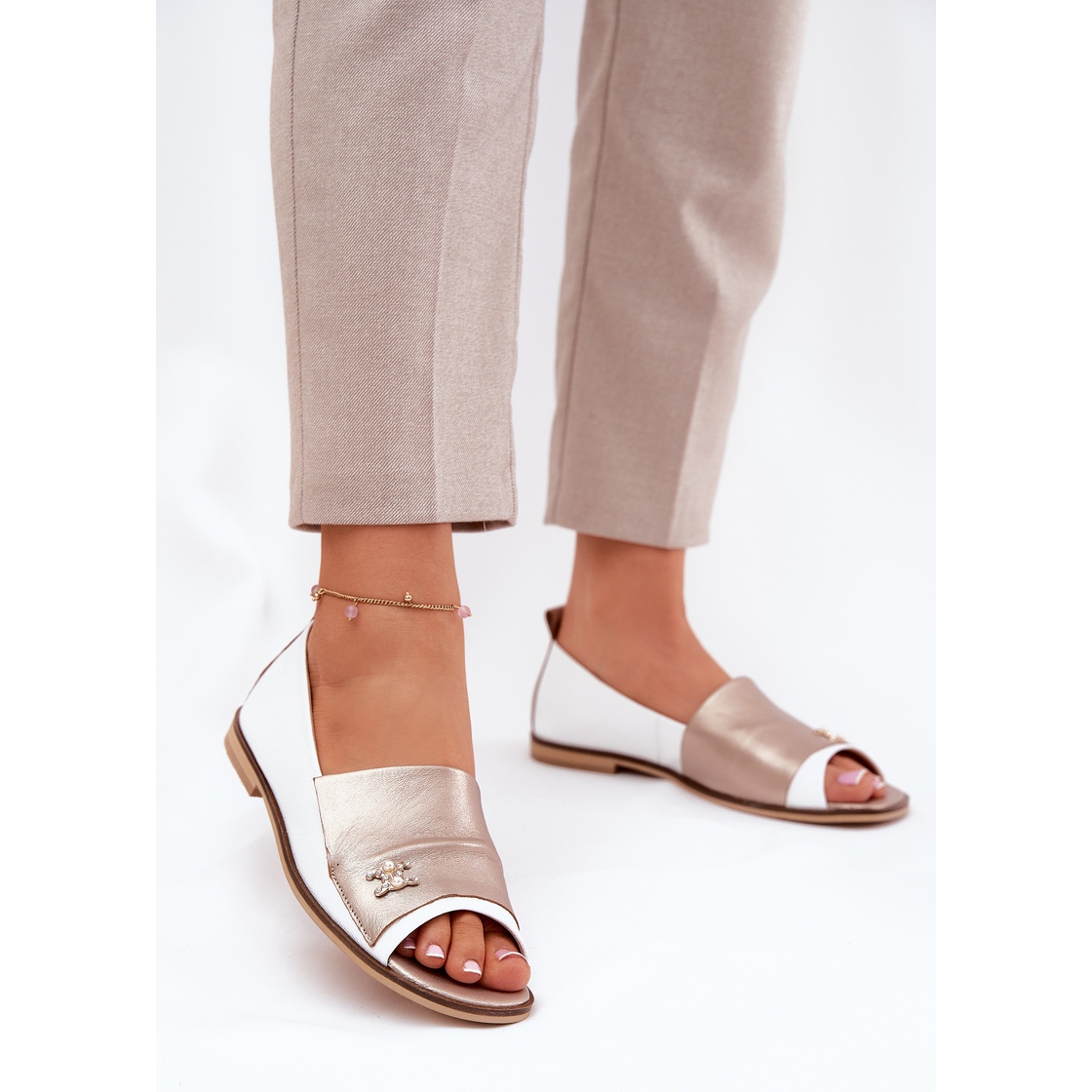 Zazoo Kožená elegantní balerína s holými prsty zazoo 1865 bílá a zlaté bílý