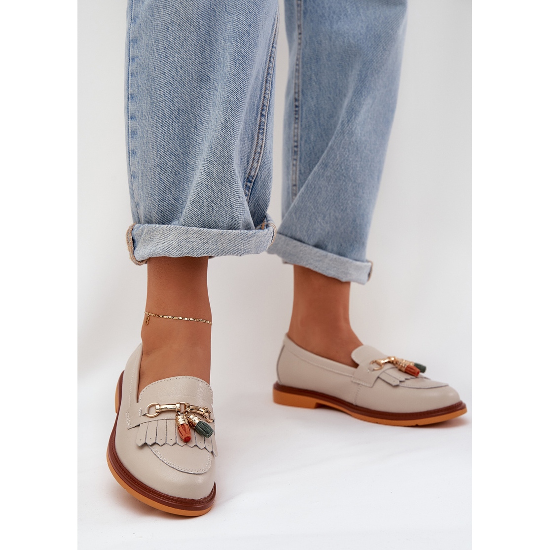 S.Barski S.Barski Kožená elegantní mokavice s plochou podpatkem S. Barski LR51-768 BEIGE béžový