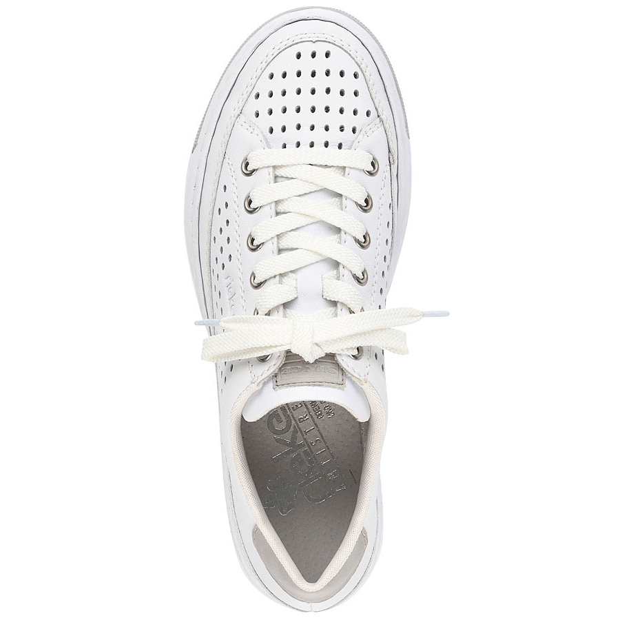Rieker Kožená pohodlná dámská prolamovaná sportovní obuv, bílá, Rieker L8849-80 bílý