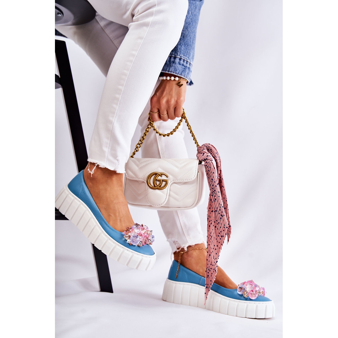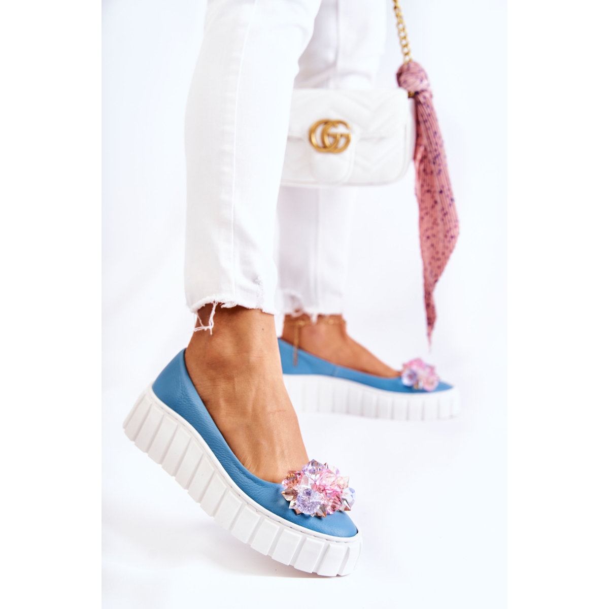 PA2 PA2 Kožené Baleríny Na Platformě S Modrým A Bílým Ornamentem Ladette