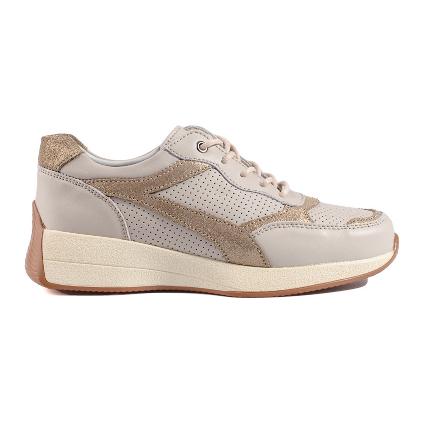 Tyto béžové, kožené tenisky jsou praktické, módní obuvi pro ženy, které každý den hledají pohodlí a univerzální styl.