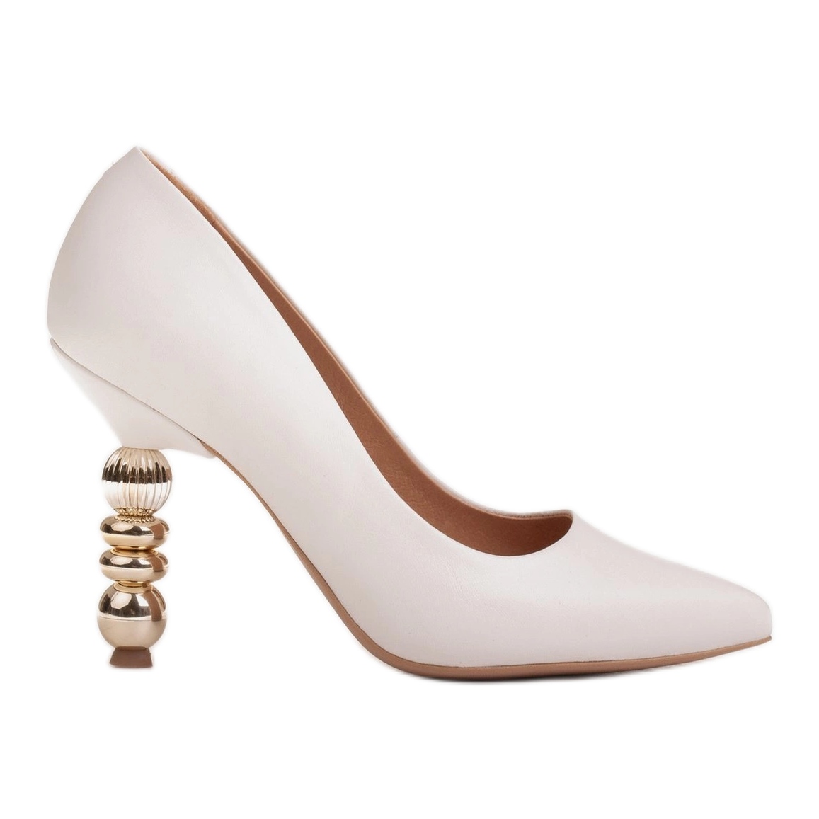 Marco Shoes Marco Shoes Kožené bílé podpatky s kamínky bílý