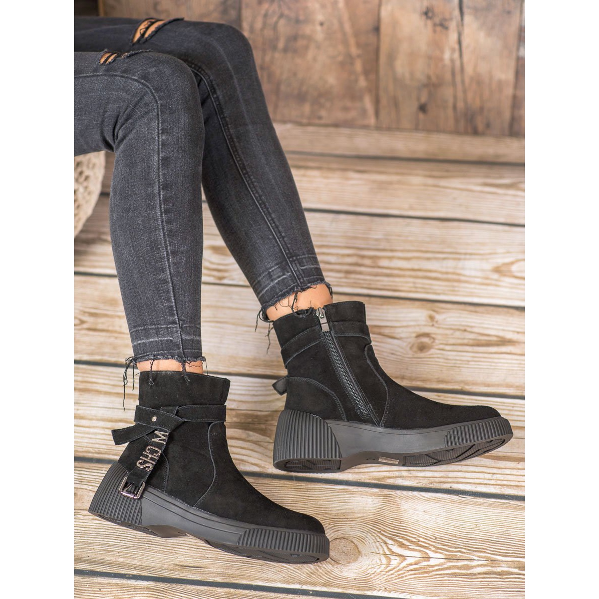 Objevte nový rozměr pohodlí a stylu s kotníčkovými botami na platformě od značky Filippo. Tyto elegantní dámské kozačky vyrobené z přírodní kůže se semišovou úpravou vynikají univerzální černou barvou, která se skvěle hodí do různých stylů.