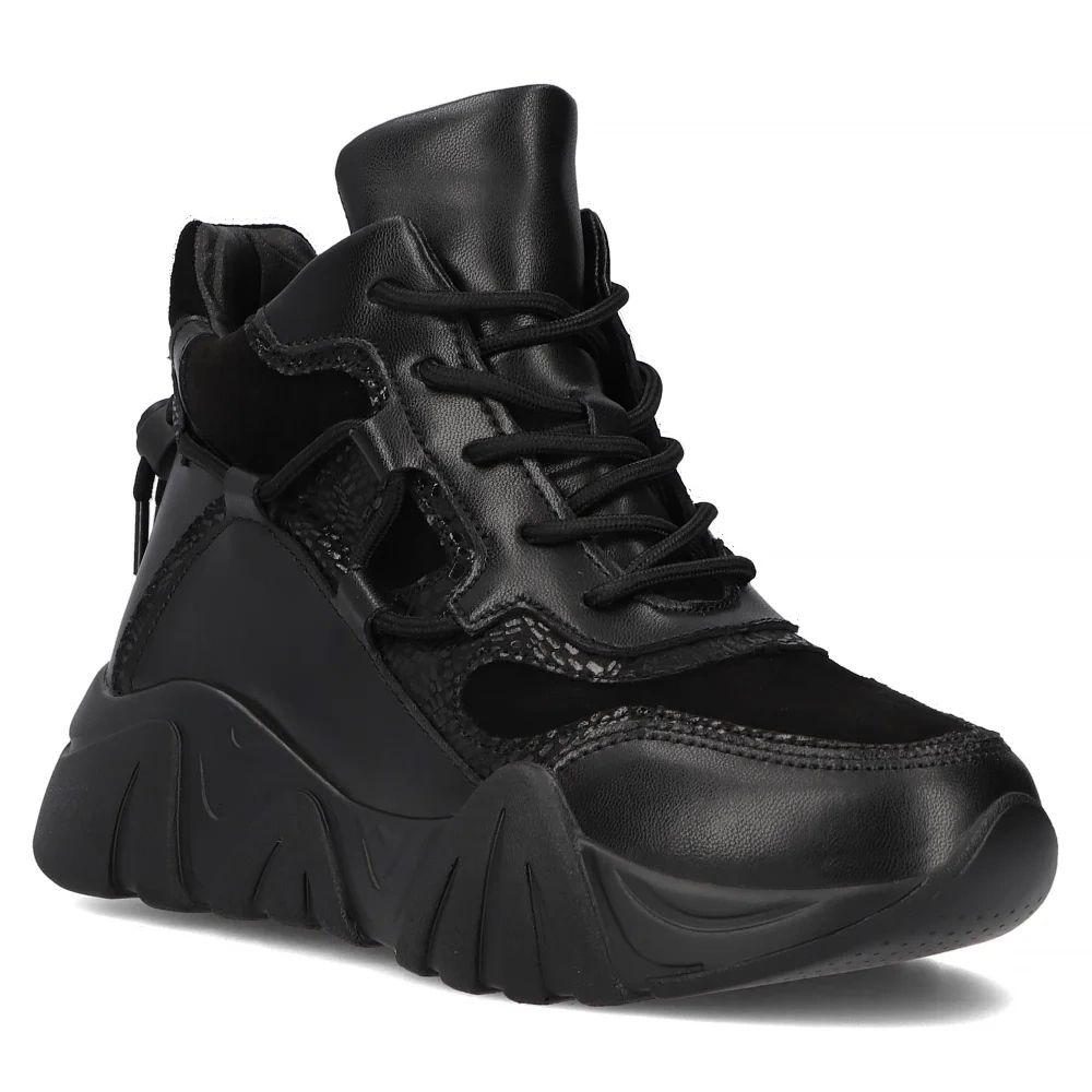 Kožené boty na platformě Filippo DBT6367/24 Bk, černé černý