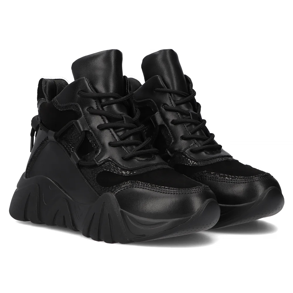 Platforma s vysokou 5 cm způsobuje, že tyto boty vypadají nejen senzačně, ale také opticky prodlužují postavu. Kulatý nos a klasický šněrování doplňuje celek a přidává univerzální postavu, která je ideální pro každodenní příležitostné stylizace.