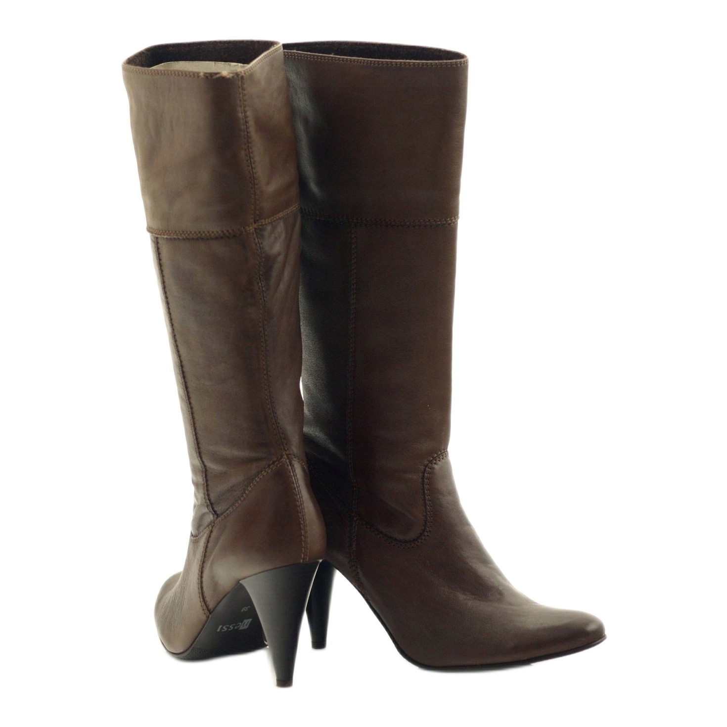 Kožené boty na vysokém podpatku Nessi 20310 — capucino-hnědé