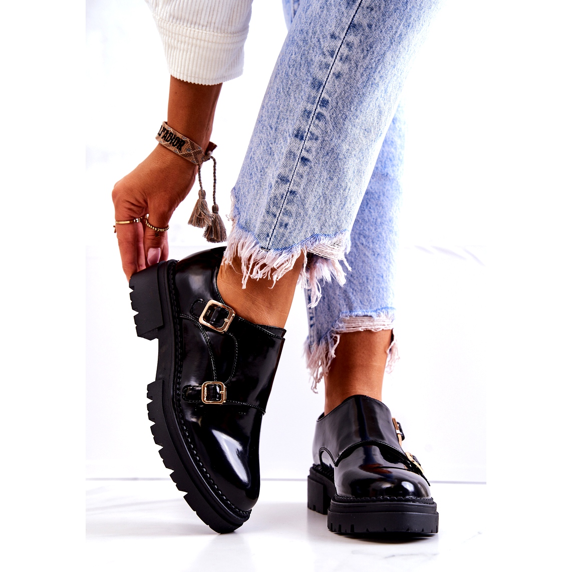 Měkká stélka z přírodní kůže zajišťuje pohodlí při nošení, díky čemuž jsou tyto boty ideální volbou na dlouhé dny v práci nebo na setkání s přáteli. Nízký masivní 4,5 cm podpatek dodává stabilitu a pohodlí a přezky dodávají obuvi jedinečný charakter a eleganci.