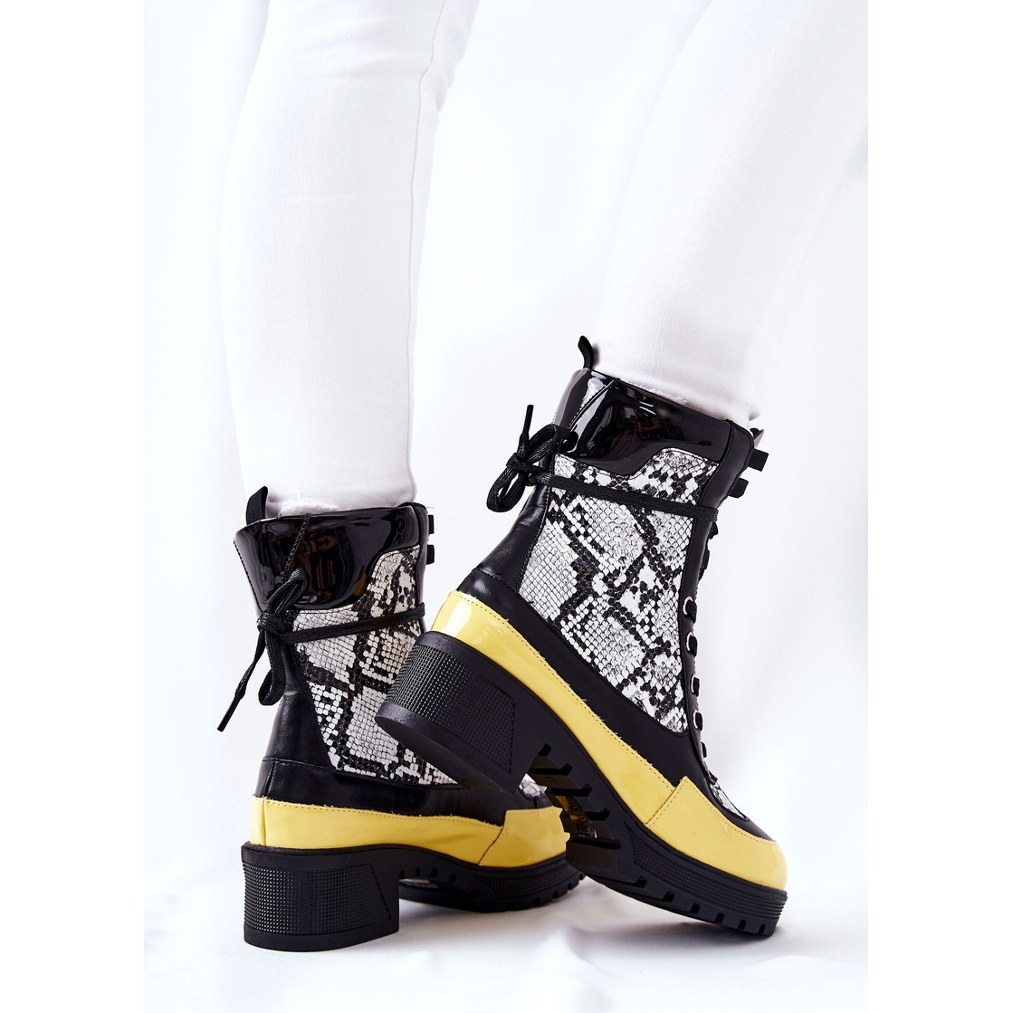 Inna marka Kožené boty z hadí kůže Black and Yellow Meridiah bílý černá žlutá