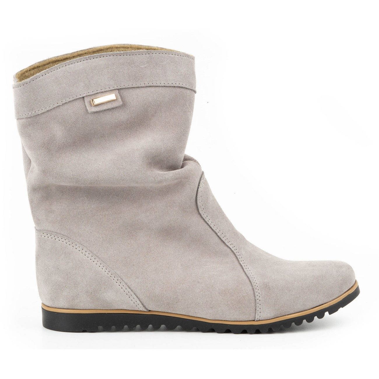 Olivier Olivier Kožené boty zateplené Emi světle šedou šedá