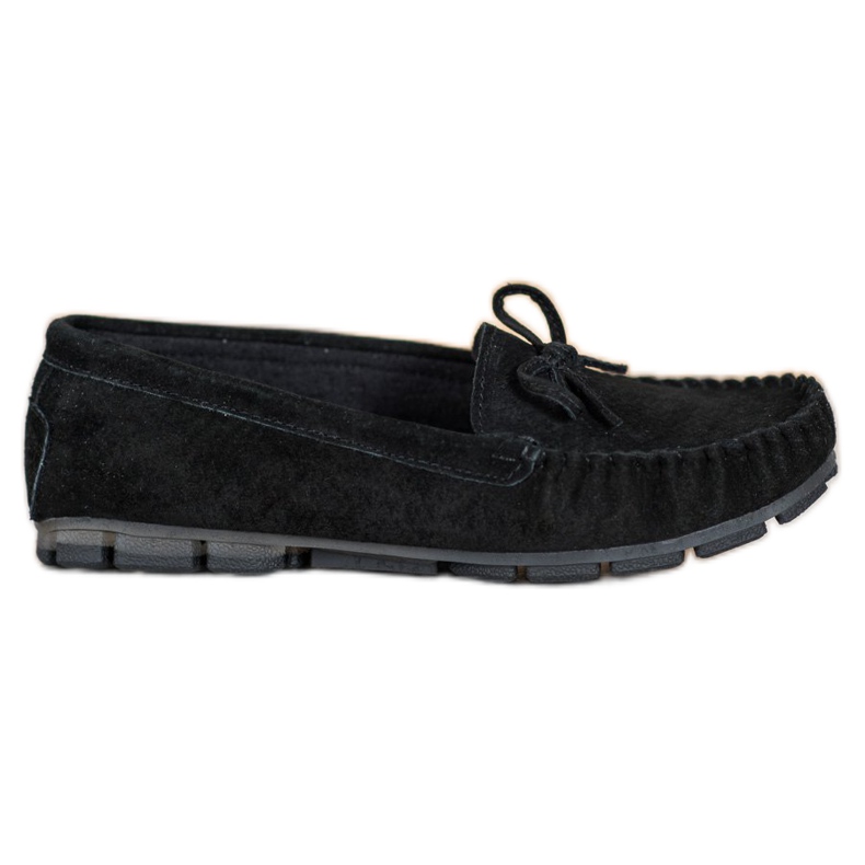 Mokasíny byly pečlivě navrženy s ohledem na pohodlí při používání. Přední část boty zdobí jemný volán, který jim dodává jedinečný charakter a jemná mašlička z černého provázku zdůrazňuje jejich elegantní styl. Díky vestavěné měkké patě mokasíny dobře drží nohu a umožňují vám volný pohyb po celý den.