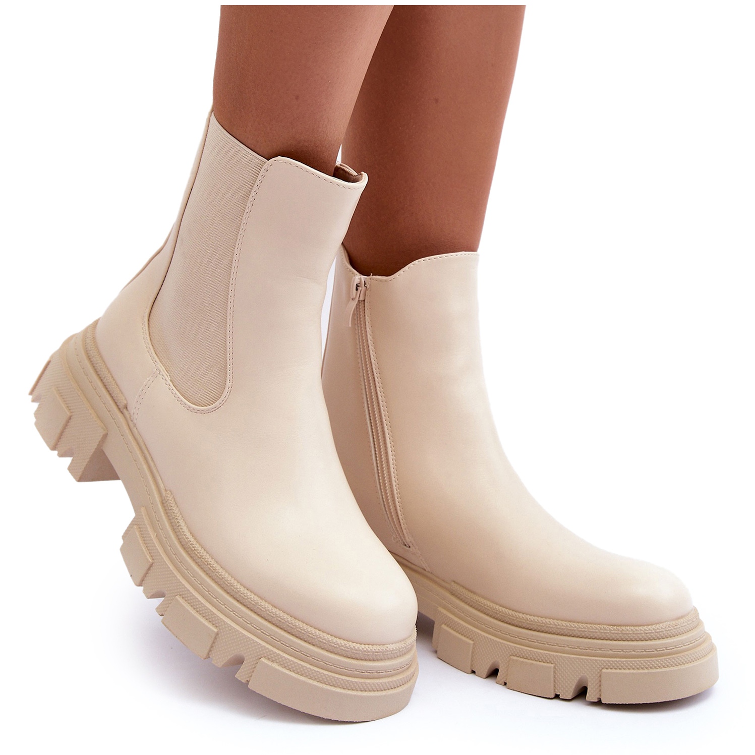 **Kožené Chelsea boty s plochým podpatkem a platformou, světle béžová Solita**
