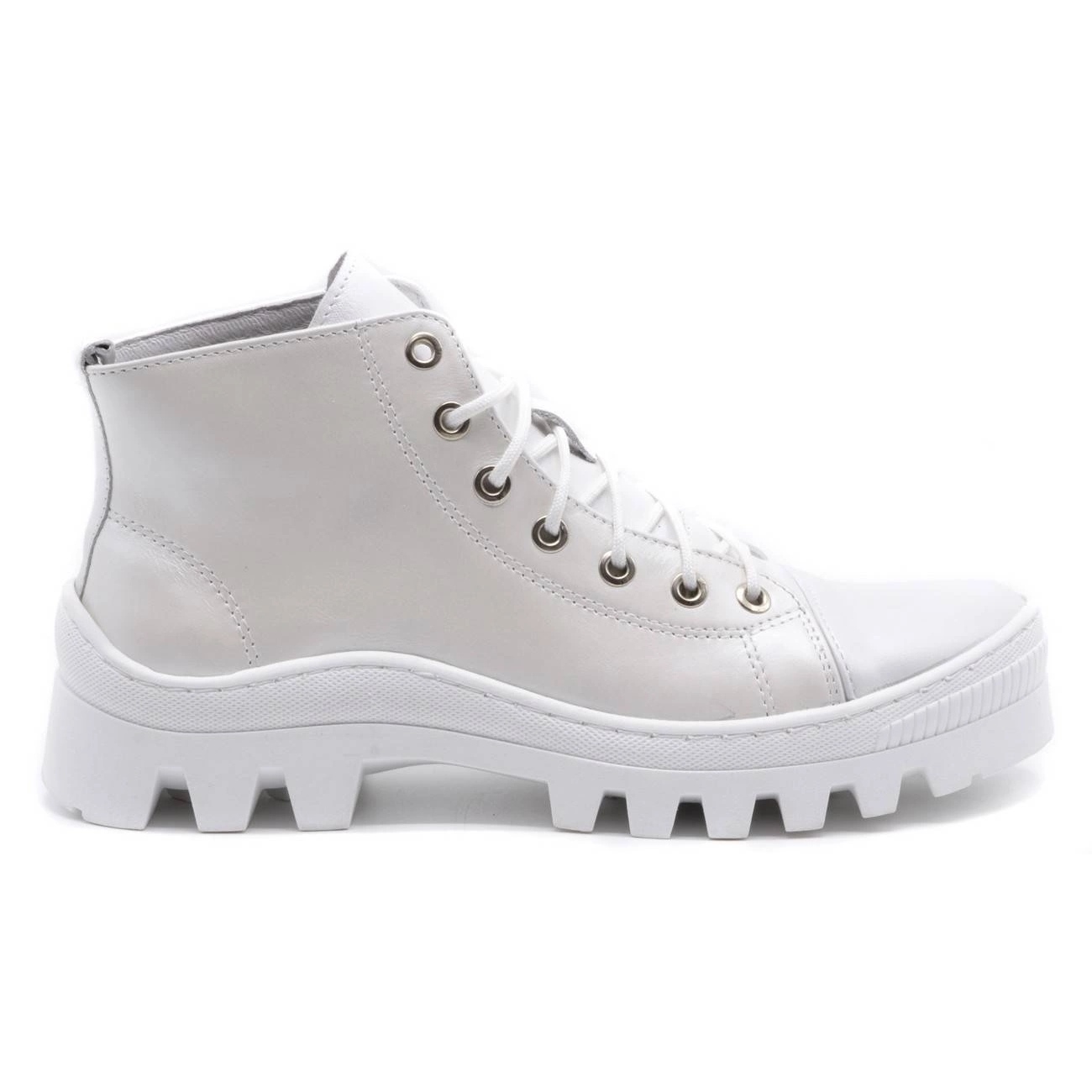 Polbut Polbut Kožené dámské kozačky D1 bílé s bílou spodní stranou bílý