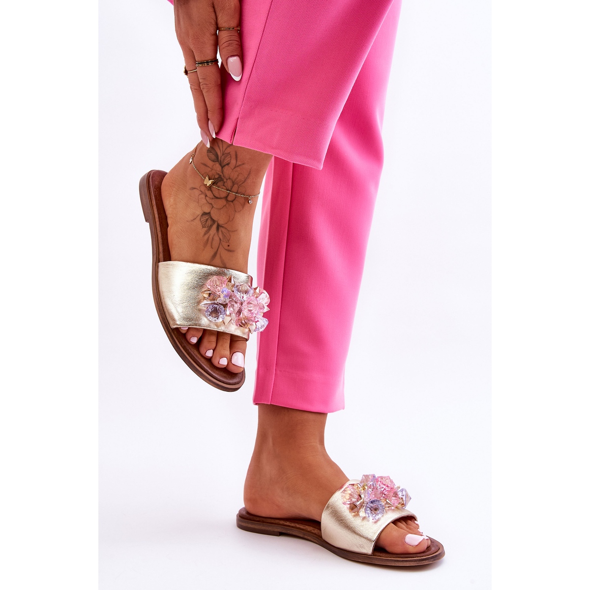 Nicole Kožené dámské pantofle s ozdobou Nicole 2726/064 Gold zlatý