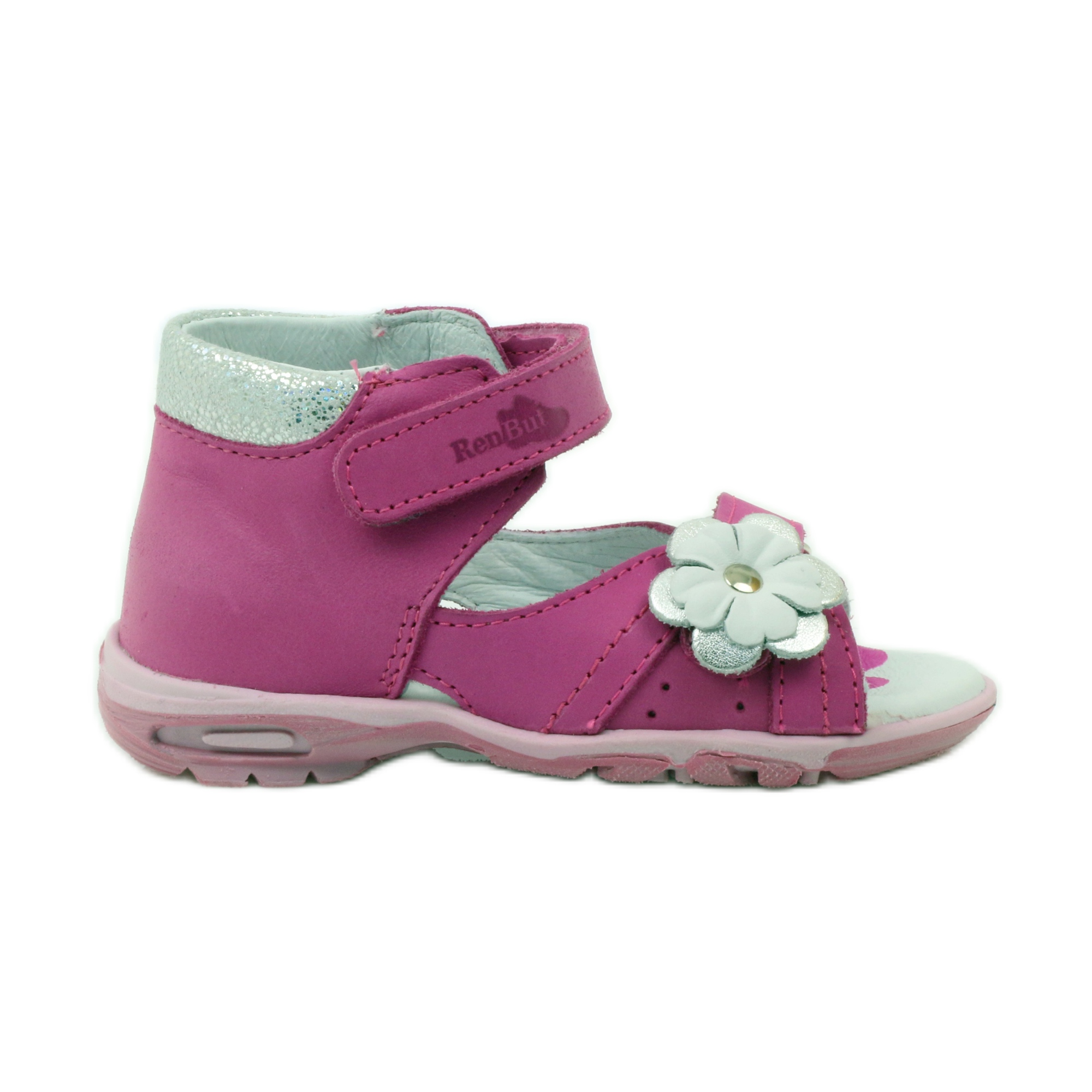 Ren But - dívčí kožené sandály na suchý zip, vzor. 097 (růžová)