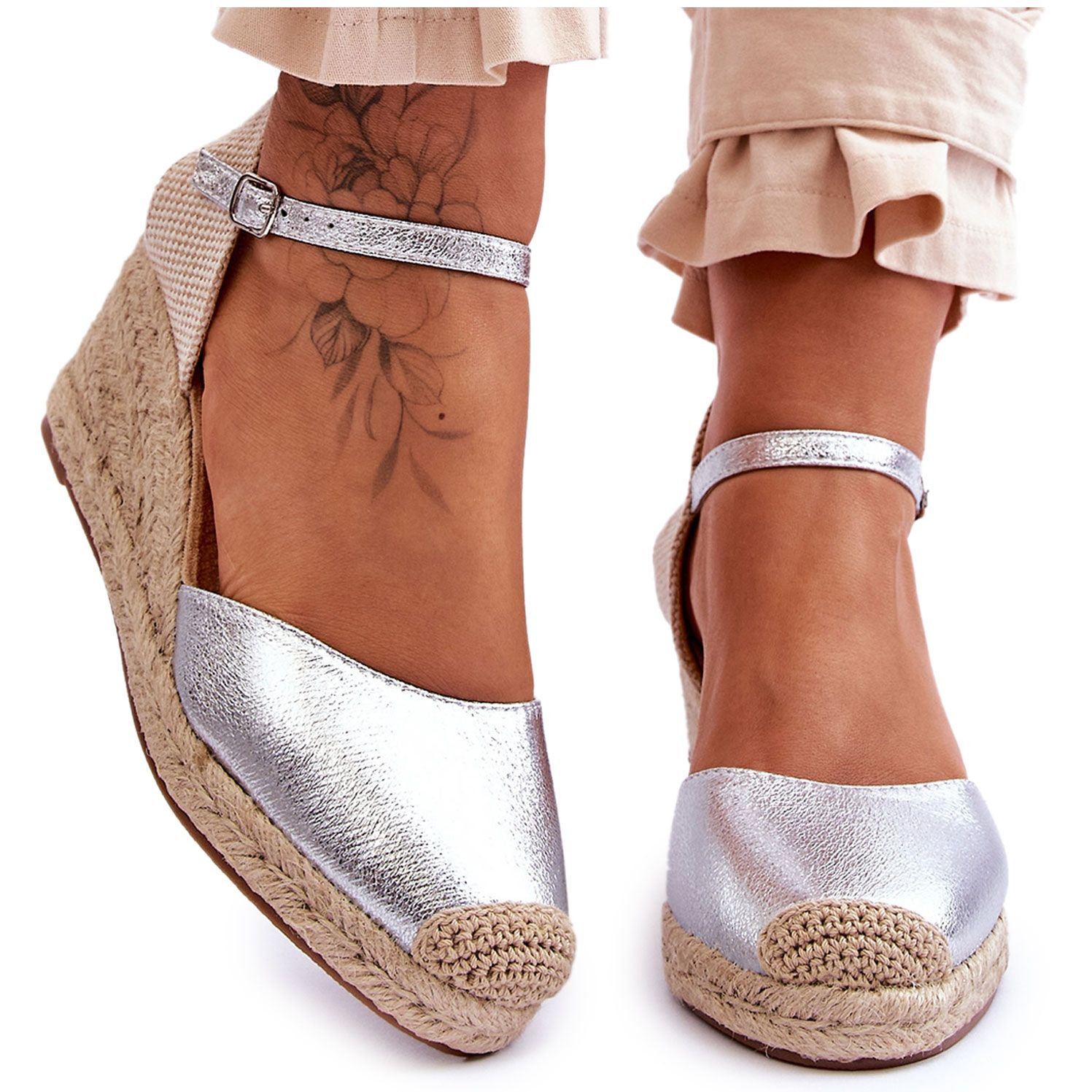 Inna marka Kožené espadrilky Sandály na klínu Silver Cammer stříbrný