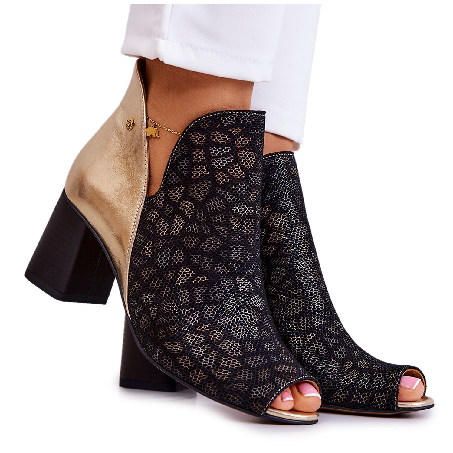 Maciejka Kožené holínky na sloupku Maciejka 05507-01 Black and Gold černá zlatý