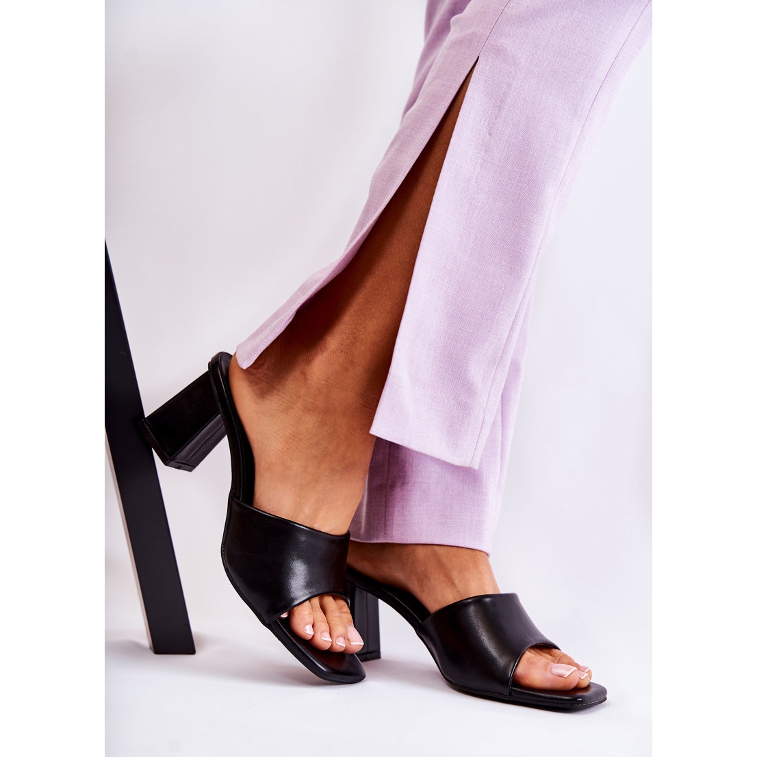 - Modelka: Klasické Kožené Pantofle Na Vysokých Podpatcích