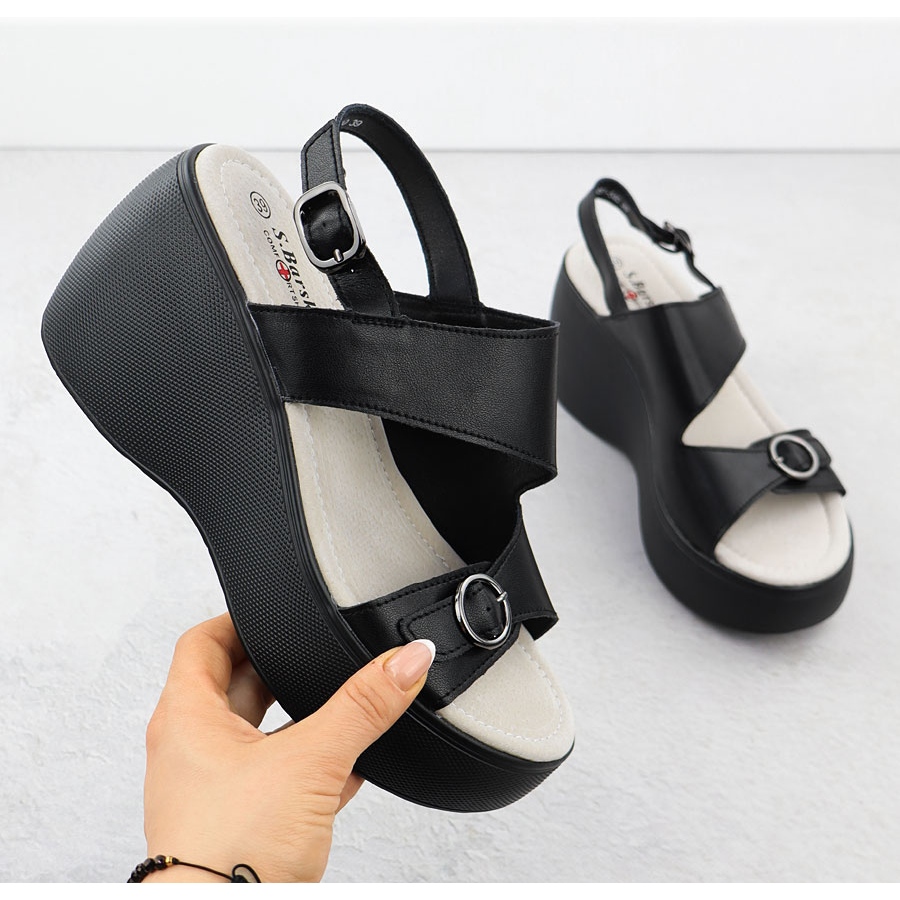 S.Barski S.Barski Kožené klínové sandály Black S. Barski LR51-540 černá
