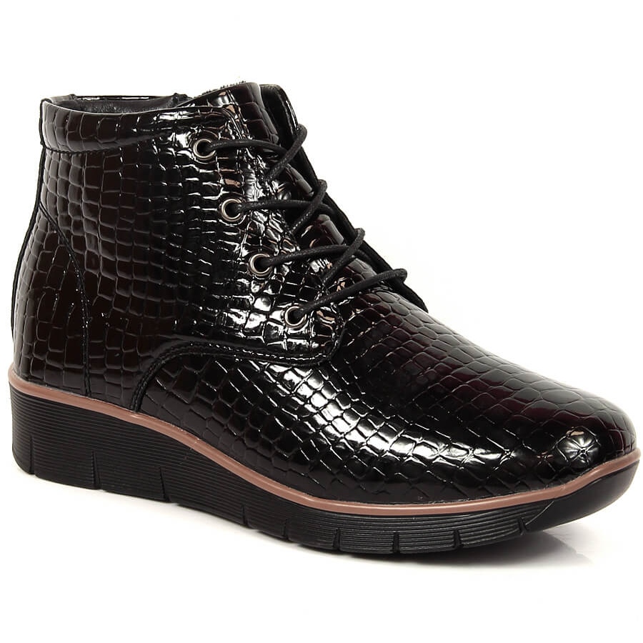 Boty jsou vybaveny zipem a šněrováním, což umožňuje dokonalé přizpůsobení noze. Ležérní styl a lakovaná povrchová úprava vytvářejí elegantní, ale ležérní vzhled, který se perfektně hodí k různým stylům – jak na každý den, tak na zvláštní příležitosti.