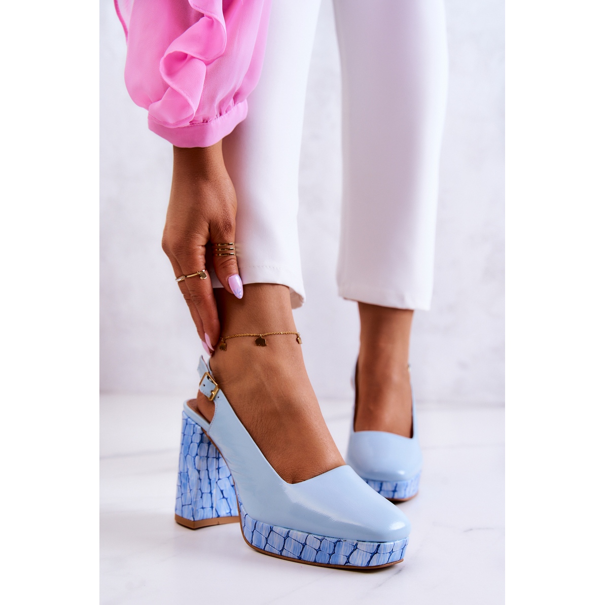 Tyto lodičky se vyznačují otevřeným podpatkem a nastavitelným páskem se zapínáním na přezku, který zajišťuje nejen estetiku, ale také dokonalé padnutí na nohu. Špička boty je zakrytá, což jí dodává elegantní vzhled a masivní patní sloupek (výška 10 cm) nabízí stabilitu, takže získáte jistotu na každém kroku.