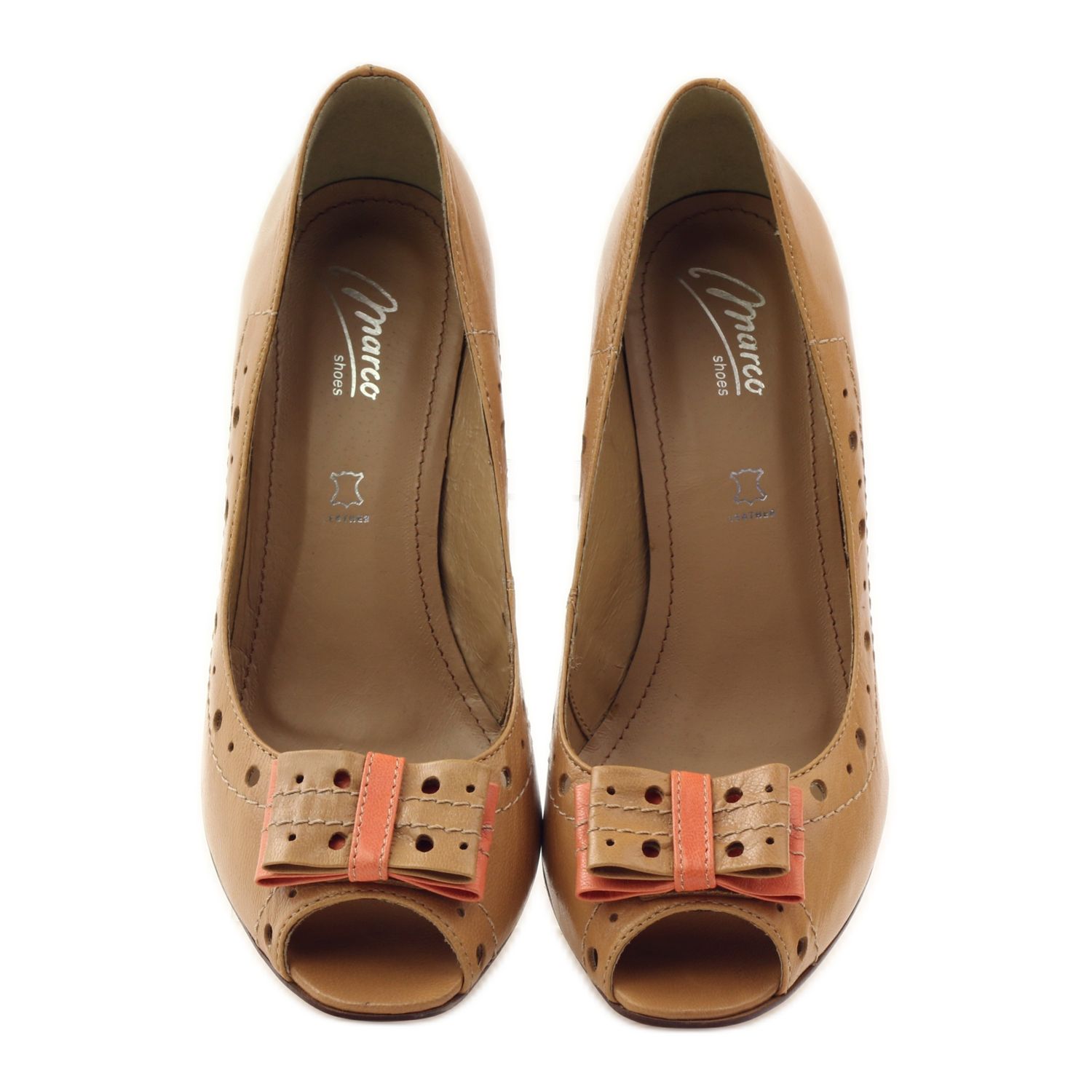 Marco Kožené lodičky s mašlí Marco 1932 hnědý oranžový