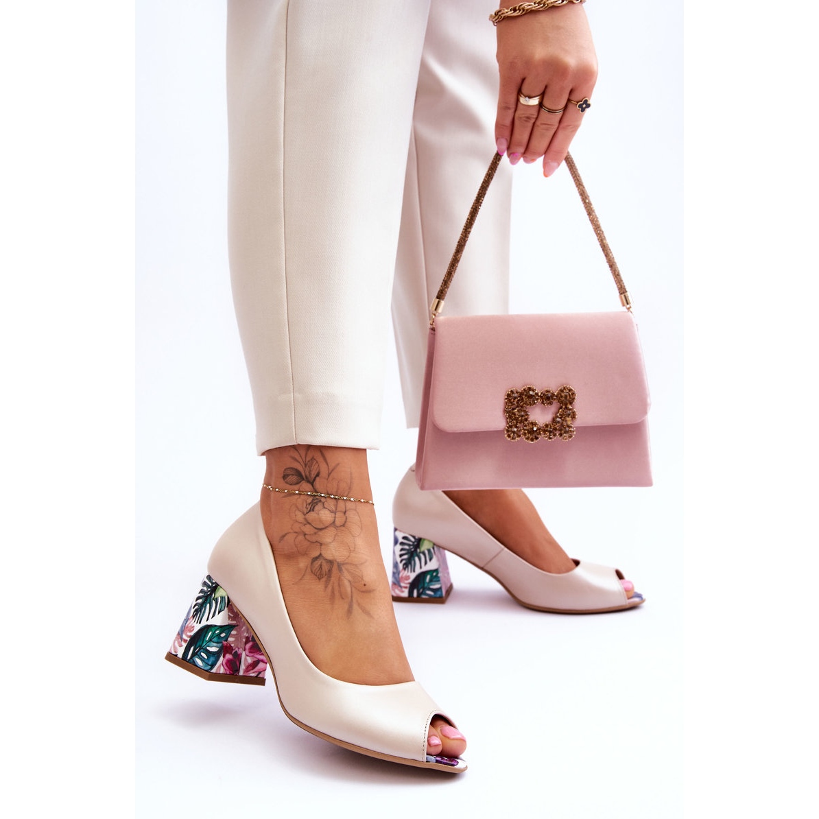 Lewski Shoes Lewski Shoes Kožené lodičky s ozdobným podpatkem Leski Boty 2608/K Beige Pearl béžový
