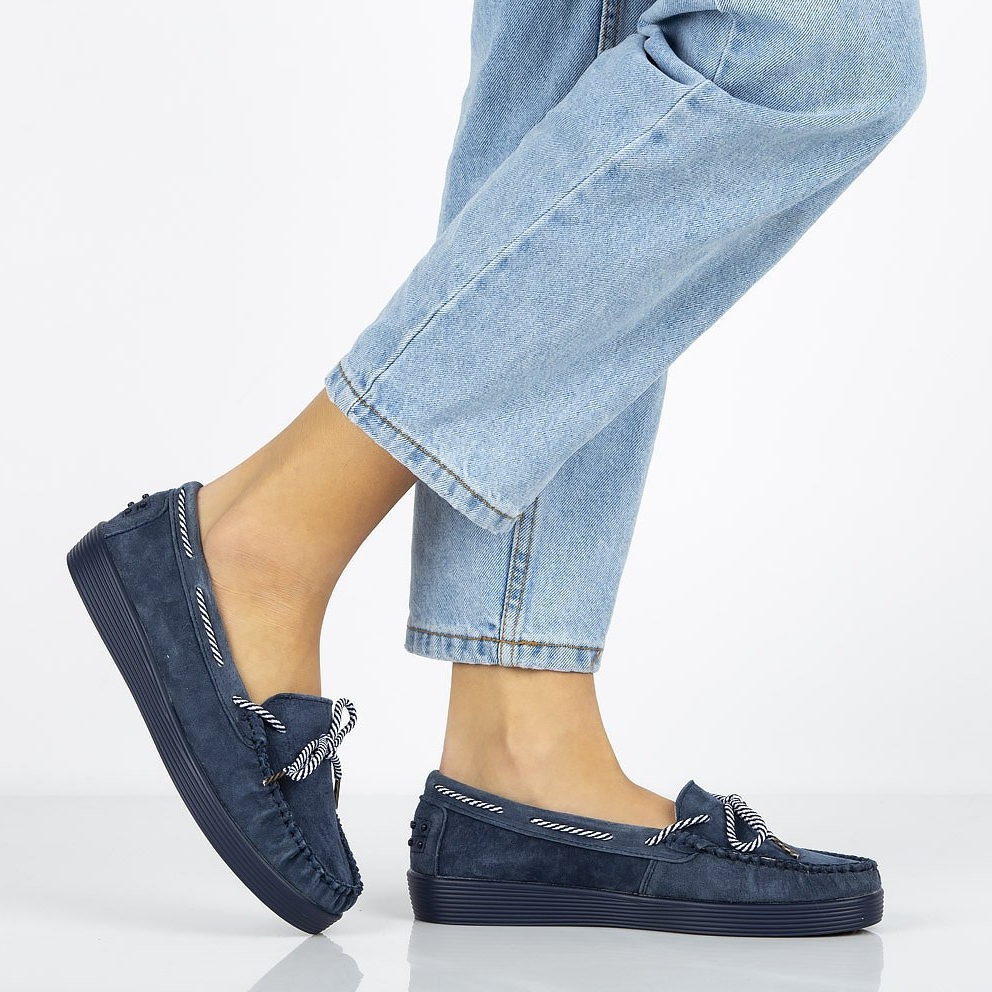 Tyto mokasíny mají nazouvací uzávěr, díky kterému se snadno nazouvají a svlékají. Jejich látková podšívka a kožená stélka zajišťují dostatečnou cirkulaci vzduchu, která udržuje chodidlo v pohodlí i v teplejších dnech. Další výhodou jsou jemné mašle, které dodávají modelu ženský šik.