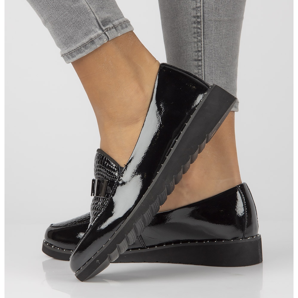 Mokasíny se vyznačují kulatou špičkou a nazouvacím zapínáním, díky kterému je nazouvání rychlé a snadné. 3 cm vysoký podpatek imitující klín dodává jemný zdvih a vytváří elegantní siluetu a široká šířka G zaručuje pohodlí při nošení.