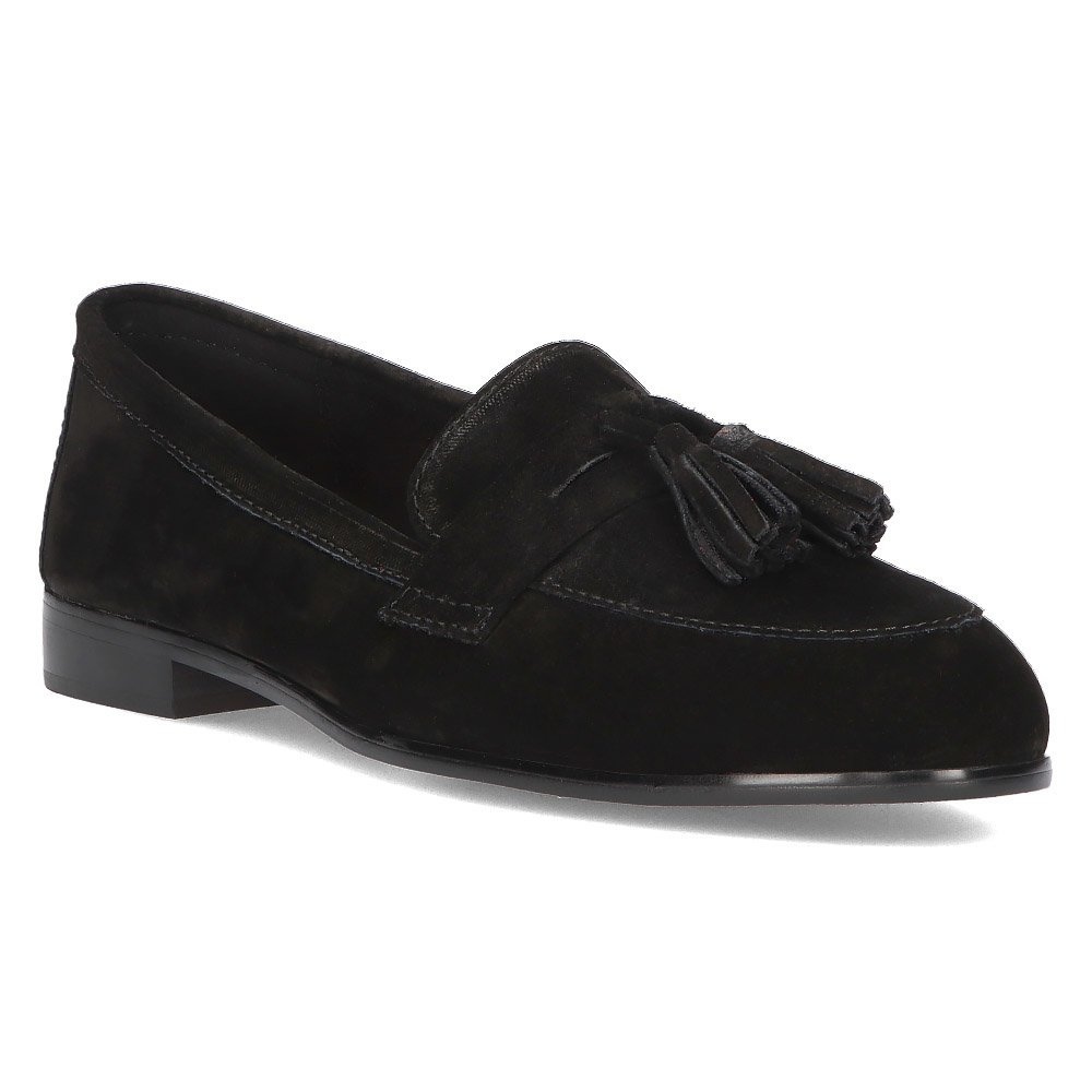 Mokasíny mají kulatou špičku a plochý podpatek, což z nich dělá perfektní řešení pro různé příležitosti – od práce až po společenské večírky. Vyznačují se minimalistickým designem v klasické černé barvě, díky kterému se snadno kombinují s mnoha styly. Třásně dodávají originalitu a ženský šarm.