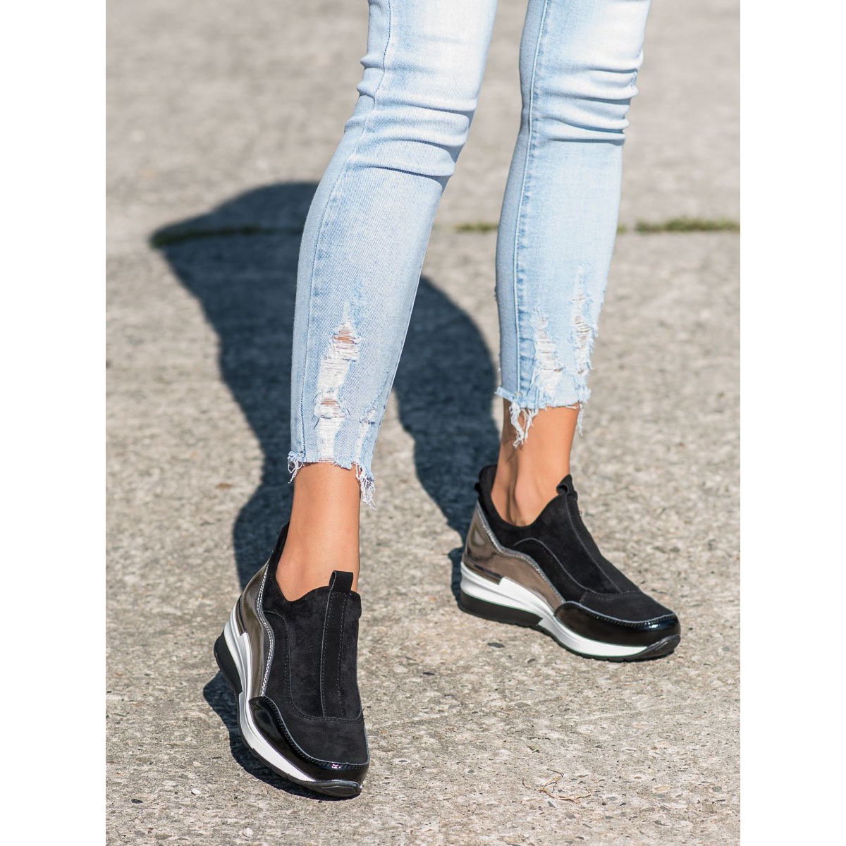Objevte elegantní kožené slip-on boty VINCEZA v klasické černé barvě, které budou dokonalým každodenním řešením. Tyto dámské sportovní boty spojují módu a funkčnost, takže je snadno sladíte k různým stylům.