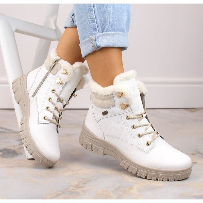 Rieker Rieker Kožené nepromokavé boty zateplené vlnou Remonte W RKR628 bílá bílý