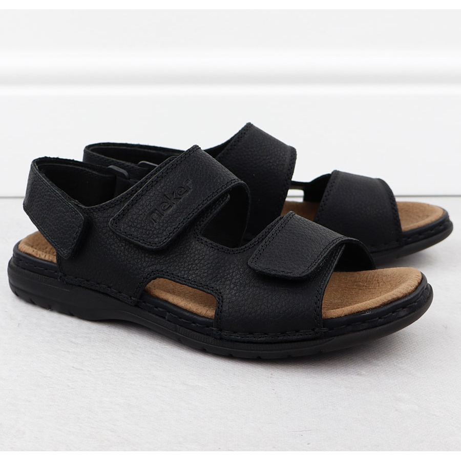 Rieker Kožené pánské pohodlné černé sandály Black Rieker 25558-01 černá
