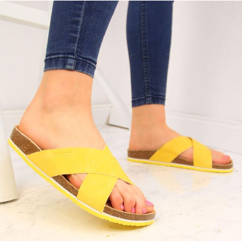 Big Star Kožené pantofle Big Star W HH274596 žluté žlutá