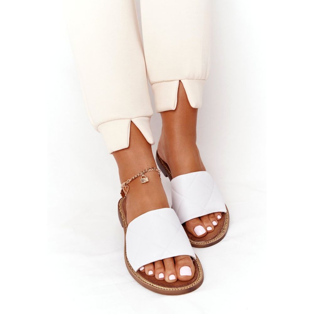 Nicole Kožené pantofle s prošíváním Nicole 2650 White bílý