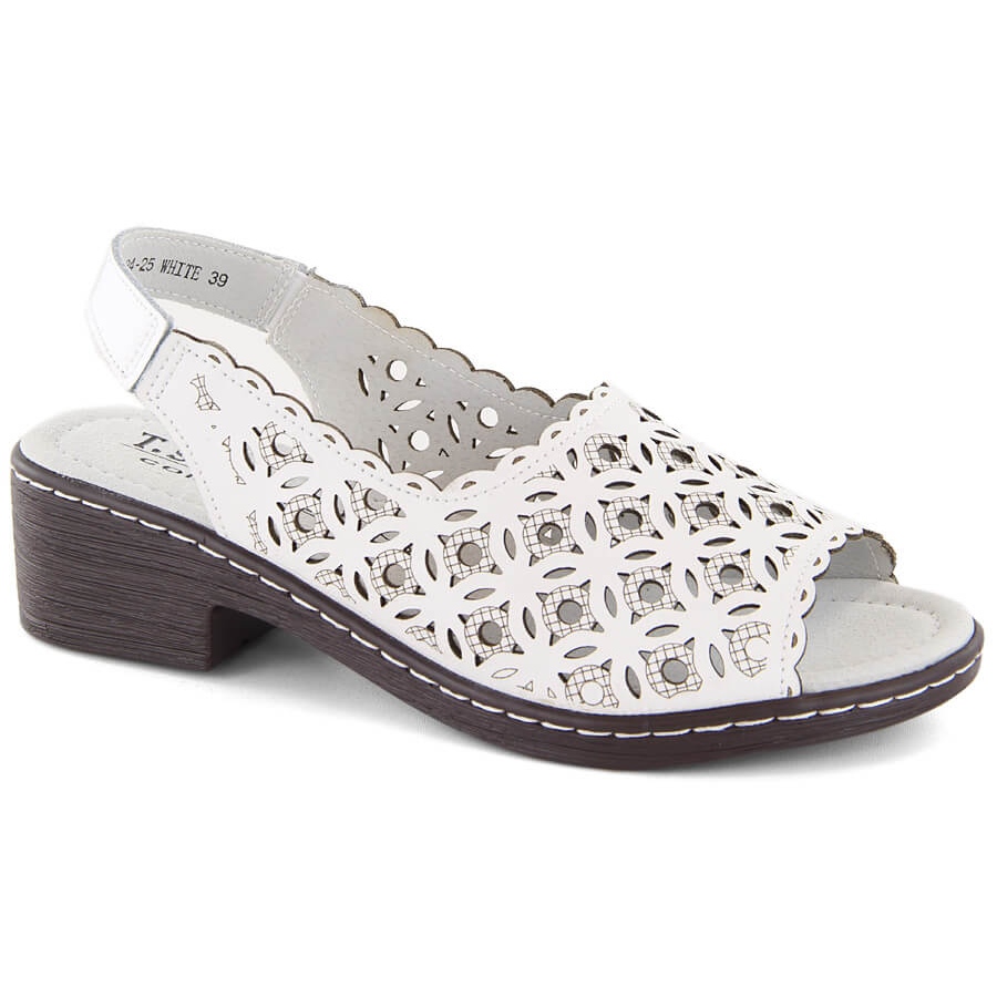 T.Sokolski Kožené pohodlné dámské bílé sandály na vysokém podpatku značky T.Sokolski bílý