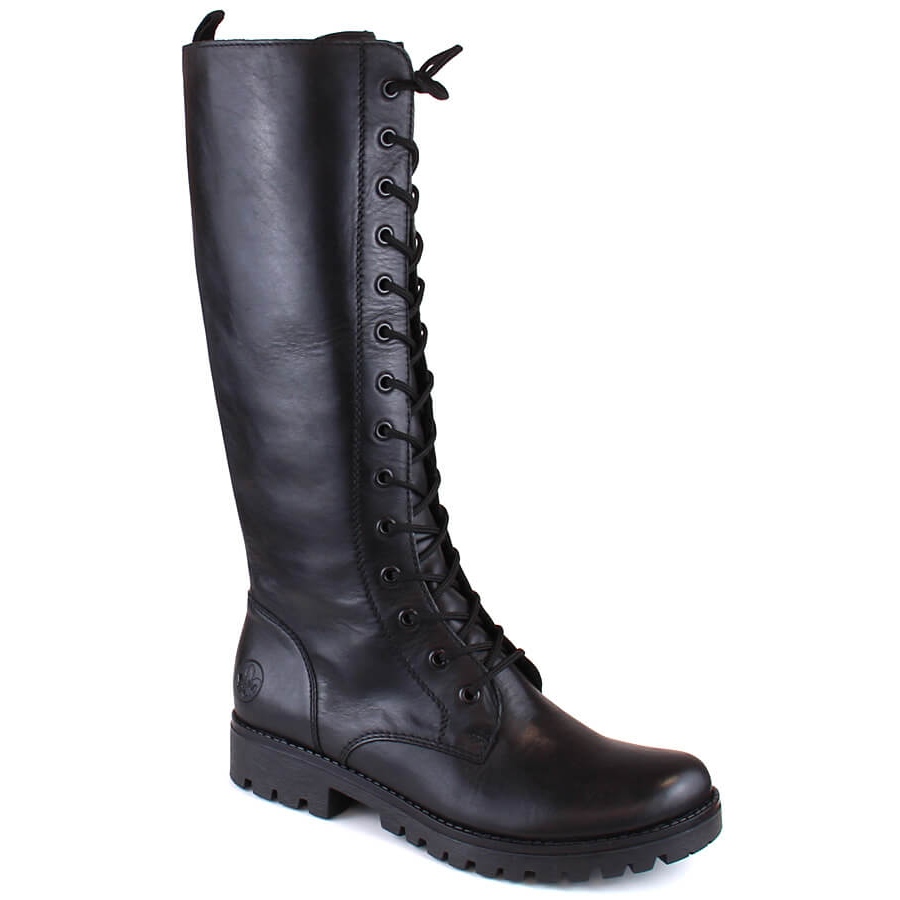 Kožené pohodlné dámské kozačky se zatepleným černým Rieker 78543-00